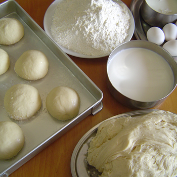 ナンは「卵」+「牛乳」+「ヨーグルト」+「小麦粉」(右上)を